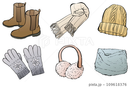 冬のファッション服と小物のイラストセット
