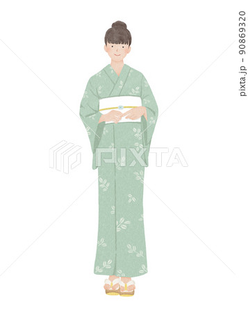 ピスタチオグリーンの浴衣を着て微笑む女性
