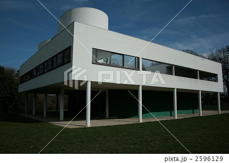 サヴォワ邸の外観でル・コルビュジエの設計によるフランスはパリの郊外