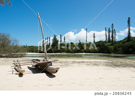 砂浜の上のピローグ(ニュー・カレドニア、イル・デ・パン)