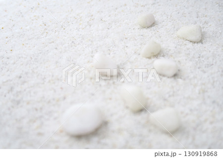背景素材の白砂と白色小石でピンポイントフォーカスイメージ