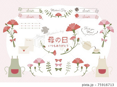 母の日のイラストセット カーネーション かわいい お母さん 花束 リボン 飾り 装飾 プレゼント