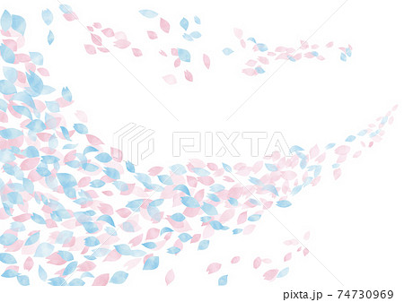 水彩風 淡いピンクとブルーの花びらが舞う(広め)