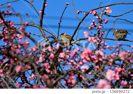 【富士山素材】静岡県富士宮市から見る富士山と梅の花【静岡県】