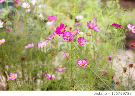 秋の公園 コスモスの花