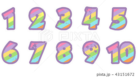 レインボーカラーの数字の水彩イラスト。時間、数字の流れのイメージ。