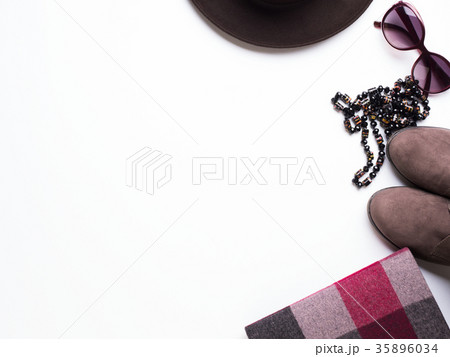 Flat lay with woman's autumn bag, glasses hat