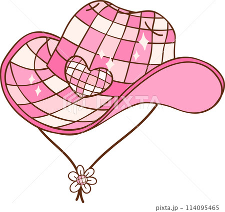 Pink Disco Cowgirl hat Retro Girly Cowboy Doodle Drawing