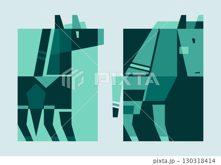 幾何学的な馬のグラフィックセット(ピーコックグリーン)