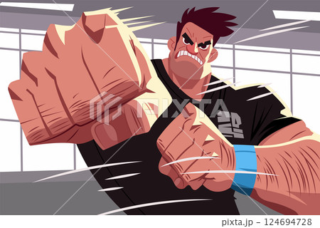 Striking vector illustration of an aggressive man with big fists, showcasing raw power and intensity. Perfect for sports, fitness, and motivational themes.