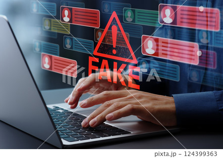デマやフェイクニュースをインターネット上に流布するイメージイラスト