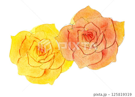 水彩イラスト ガーリーな花たち 元気な薔薇