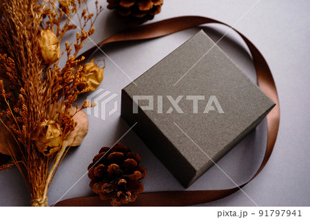 父の日 ギフトボックス 水彩 ヨコ 背景イエロー