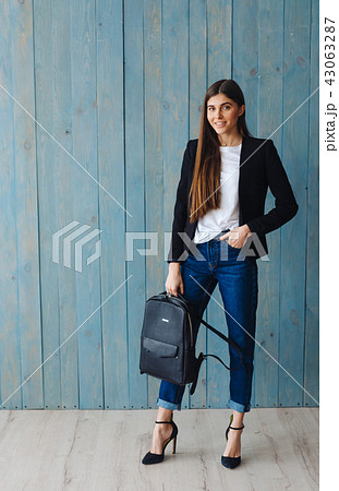 Fashionable woman hold black bag