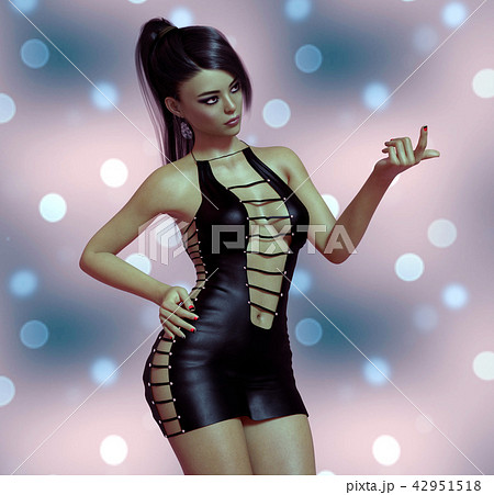 Beautiful woman in sexy leather dress