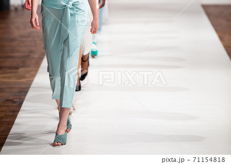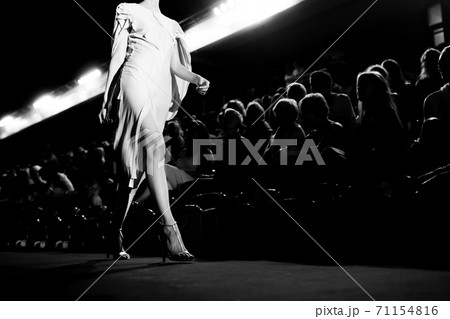 Fashion model on a runway during the fashion show. Fashion week themed photograph.
