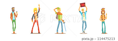 Back to School Vintage Retro Mascot Character Education Supplies Cartoon Vector Set Stationery