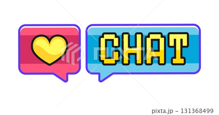 Chat Y2K groovy sticker or retro symbol. Digital communication cartoon vector tag, retro computer technology funky label. Chat love message patch or sticker with pixelated typography and heart
