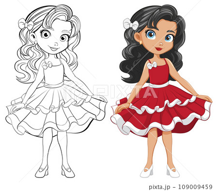Beautiful Woman Cartoon Character in Fancy Cocktail Party Dress