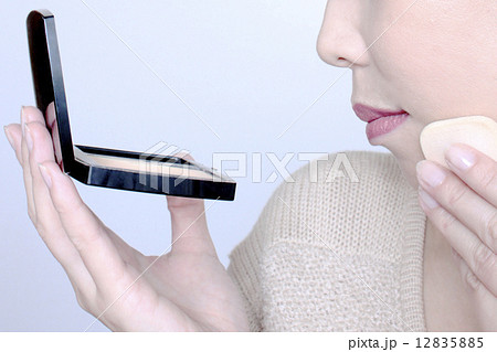 ファンデーションを塗る若い日本人女性