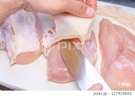 鶏胸肉 皮を剥ぐ 鶏胸肉皮なし 下処理 包丁