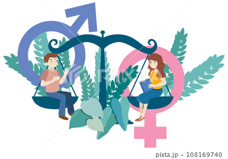 Cartoon Characters with Gender Symbols in Fisheye Lens