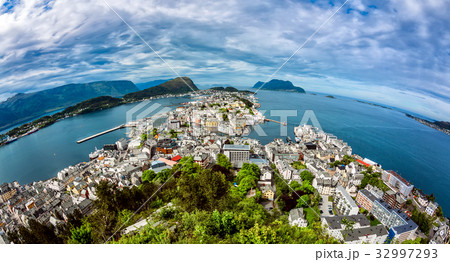 Aksla at the city of Alesund fisheye lens , Norway
