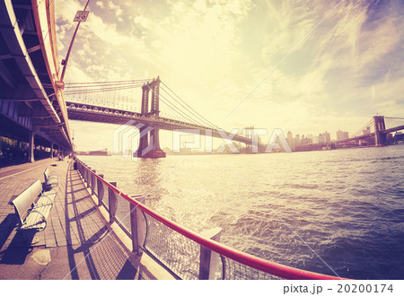 Vintage stylized fisheye lens photo Hudson River.