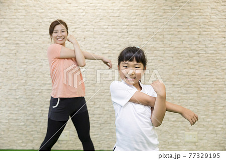 柔軟体操をする親子
