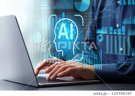 AI分析とビジネスマネジメント。スプレッドシートソフトウェアでグラフを作成する人工知能エージェント。