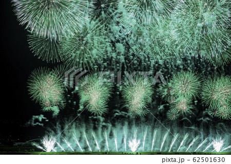 (山梨県)神明の花火 フィナーレ 緑色の花火