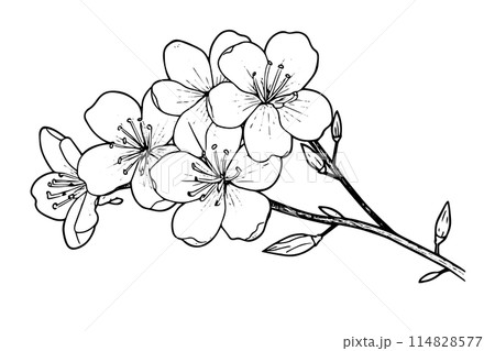 Sakura branch hand drawn ink sketch. Engraved style vector illustration.