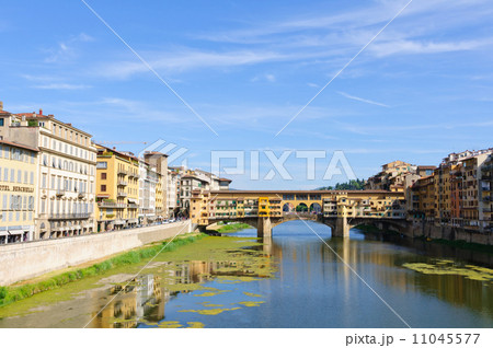イタリア フィレンツェ歴史地区 ヴェッキオ橋とアルノ川