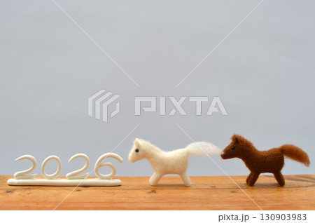 羊毛フェルトの馬の年賀素材