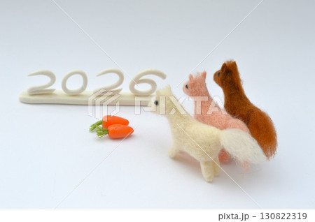 羊毛フェルトの馬とにんじんの年賀素材