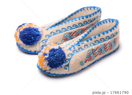 Felt shoes in the Doodle style. Winter warm shoes. Valenki traditional Russian shoes. Scandinavian style