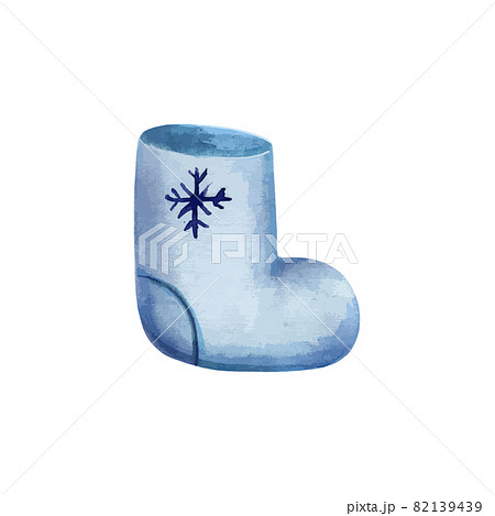 Felt boots with snowdrops Winter warm shoes. Valenki traditional Russian shoes. vector illustration in Doodle style.
