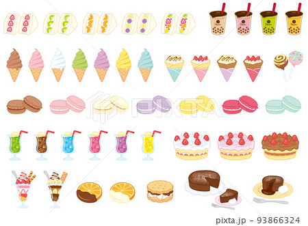 世界の人気お菓子・スイーツのイラスト①(アフタヌーンティー、ケーキ、ドーナツ)