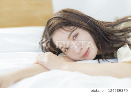 ベッドに寝そべる女性