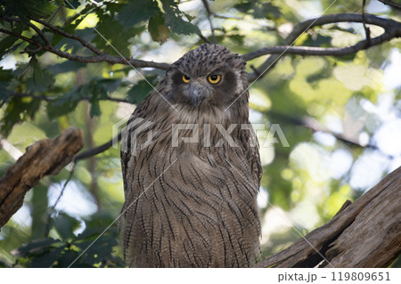 精悍な目付きで何かを睨むベンガルワシミミズク[ フクロウ】
