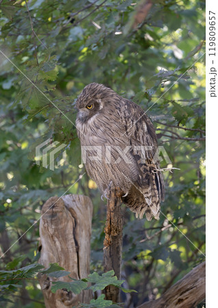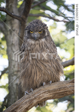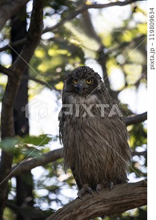 精悍な目付きで何かを睨むベンガルワシミミズク[ フクロウ】