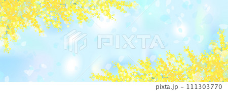 ミモザ フサアカシア フレーム 春 花 植物 コピースペース イラスト素材