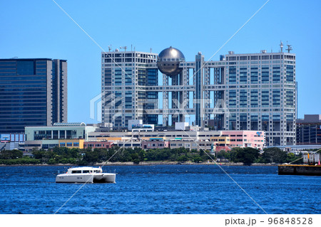 東京都港区台場、フジテレビ本社ビルとお台場の風景