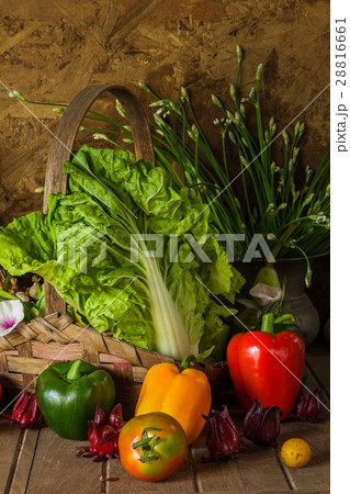 still life Vegetables, Herbs and Fruit.