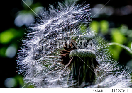 春の花タンポポ綿毛綺麗な丸。中央アップ