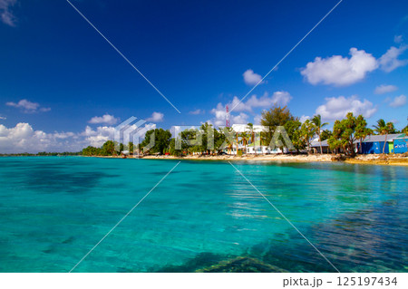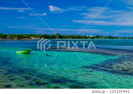 オセアニア・ポリネシアの島国ツバル 首都のフナフティ環礁フォンガファレ島の青が鮮やかなラグーン