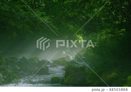 もやのかかった木曽川水系の渓流
