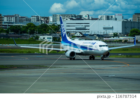 大阪空港・伊丹空港に着陸する旅客機・飛行機・全日空ボーイング737