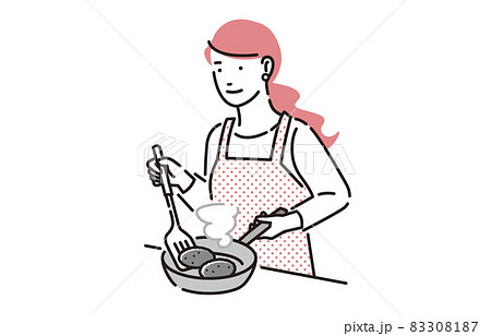 お洒落なキッチンで料理を楽しむ女性 シンプルでおしゃれな線画