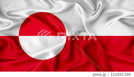 Close up of flag of Greenland with cloth texture. Realistic Greenland flag waving
